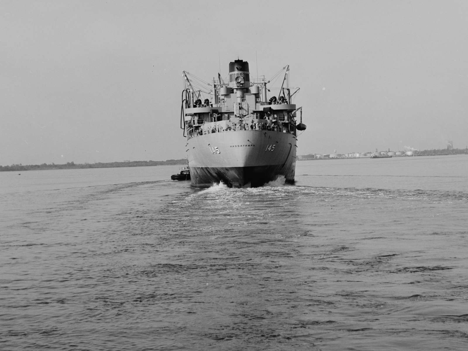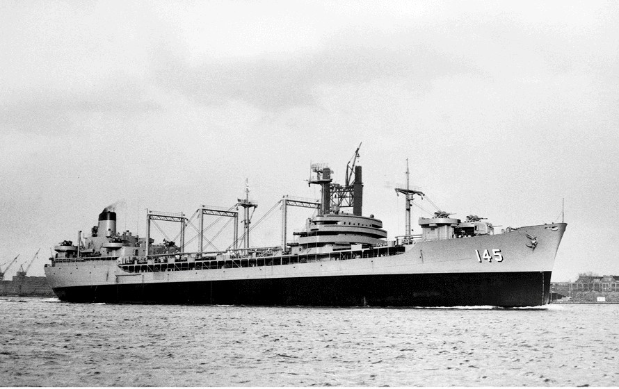 Earliest known photo of USS Hassayampa (AO-145) as a Commissioned Naval Ship - taken April 19, 1955