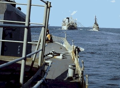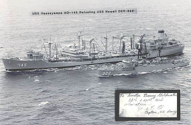 Hassayampa (AO-145) refueling USS Newell (DER-322) during Operation Market Time, c. 1967