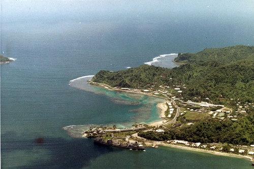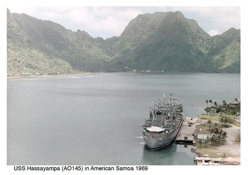 USS Hassayampa (AO-145), center foreground, in American Samoa, c. 1969