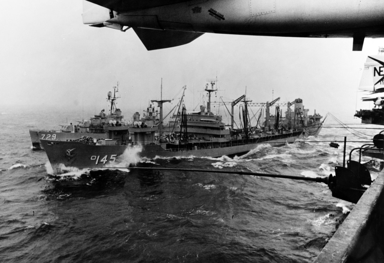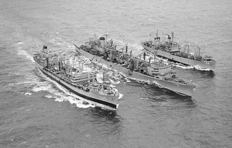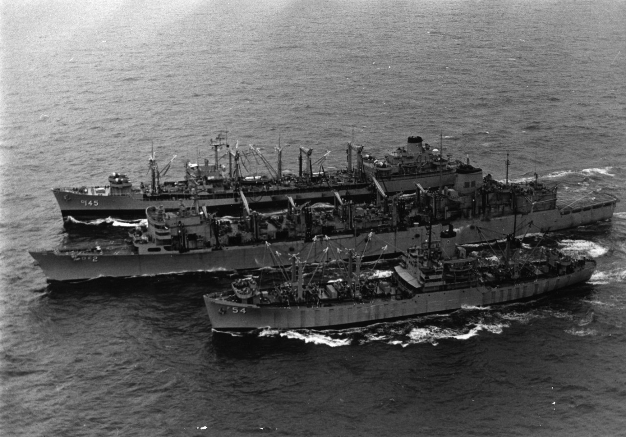 (AO-145) in unison with USS Camden (AOE-2) and USS Pictor (AF-54) 1969