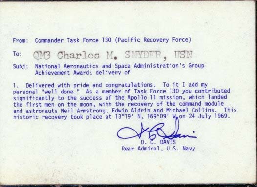 deck log shows this occurring on July 22, 1969, about 36 hours before she