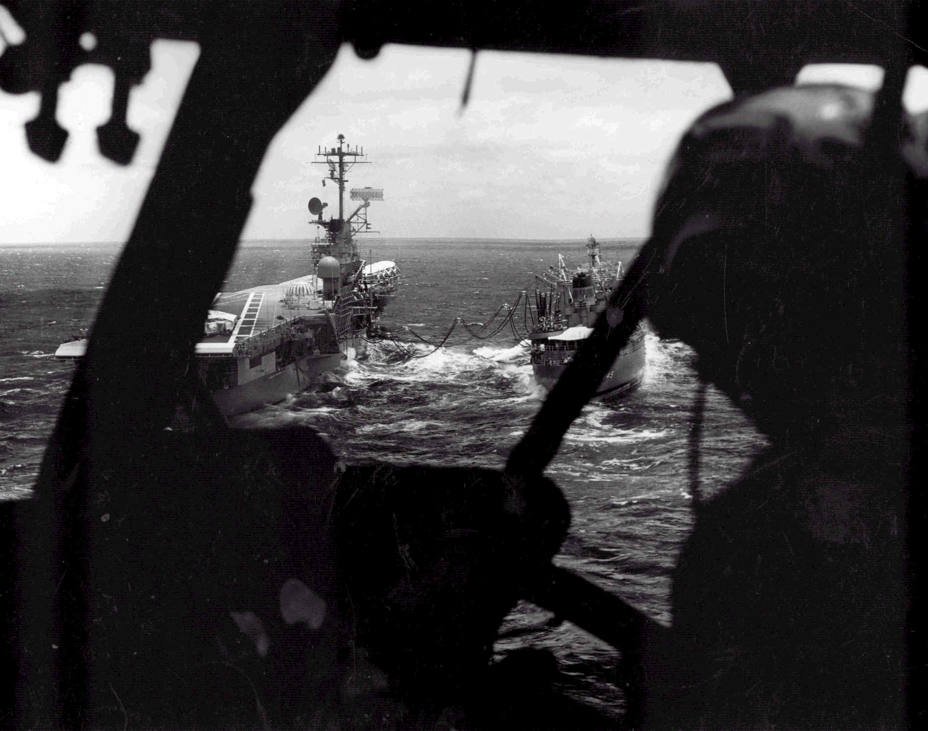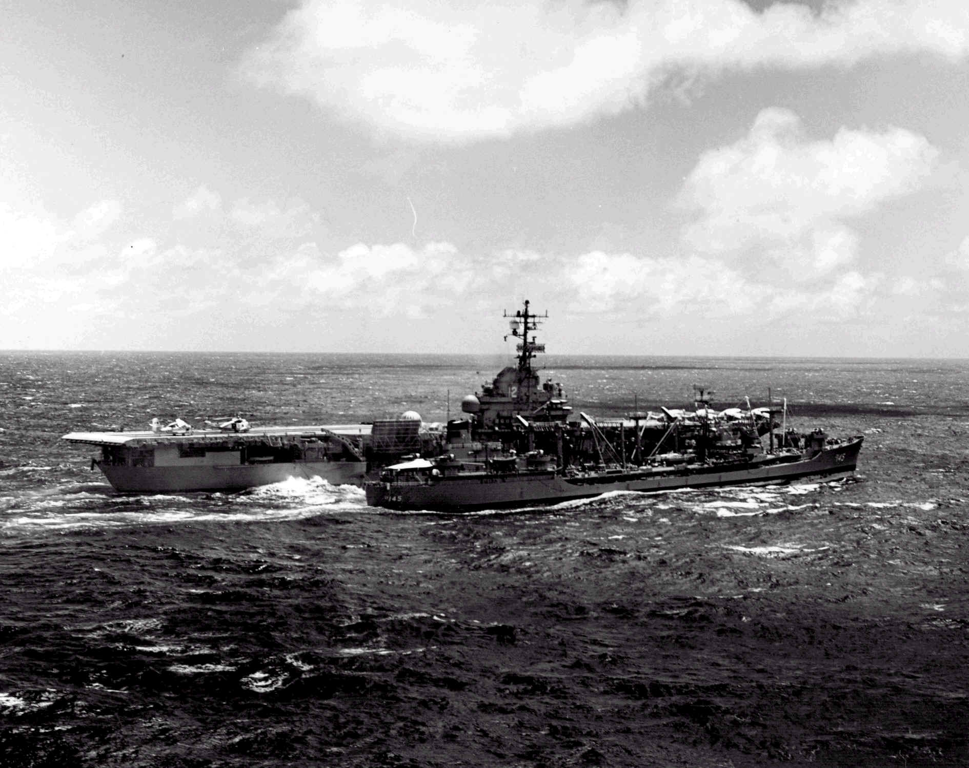 arriving from USS Enterprise (CVN-65) during underway replenishment c. April 1969