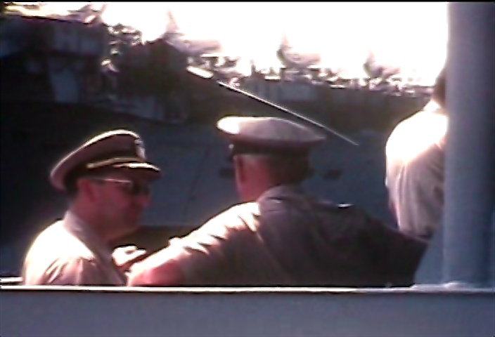 Captain Julian S. Lake (October 1968 - June 1969) chatting with Rear Admiral R. Ward,