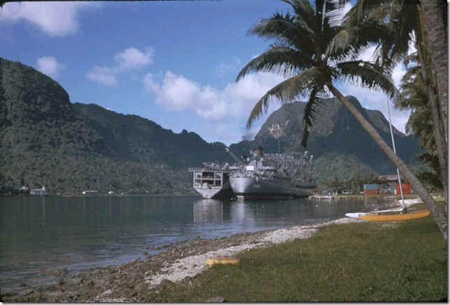 USS Hassayampa (AO-145) in Pago Pago refueling USNS Wheeling alongside - August 1973