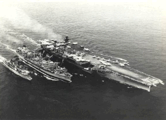 (AO-146) refueling USS Kitty Hawk (CV-63) to port;