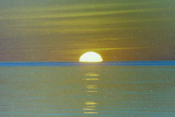 I had bought a nice Minolta single lens reflex camera at the Navy Exchange and was taking lots of photos. The camera was a lot smarter than I was and did lots of automatic adjustments for you. I decided I would shoot a series of pictures to show the green flash. I waited for a good sunset and took the photos. I got a great sunset series but when the pictures came back from the printer, the flash just was not right. I chalked it up to lack of experience and not manually adjusting the f-stop (which I don’t even remember how to do now).