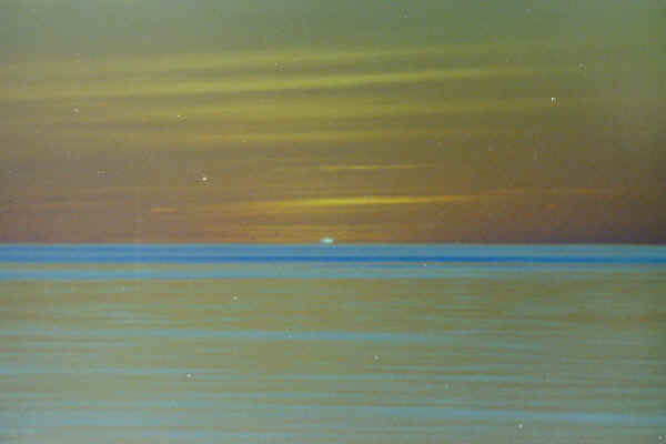 I recently bought a gadget that lets me scan my slides and film negatives into digital format. I found my green flash series and thought I’d see how they looked on the big screen of my computer. Lo and behold! Thirty years after I took the pictures, I saw what the negative had without any film processing machine, and there was my green flash in all its correct color.